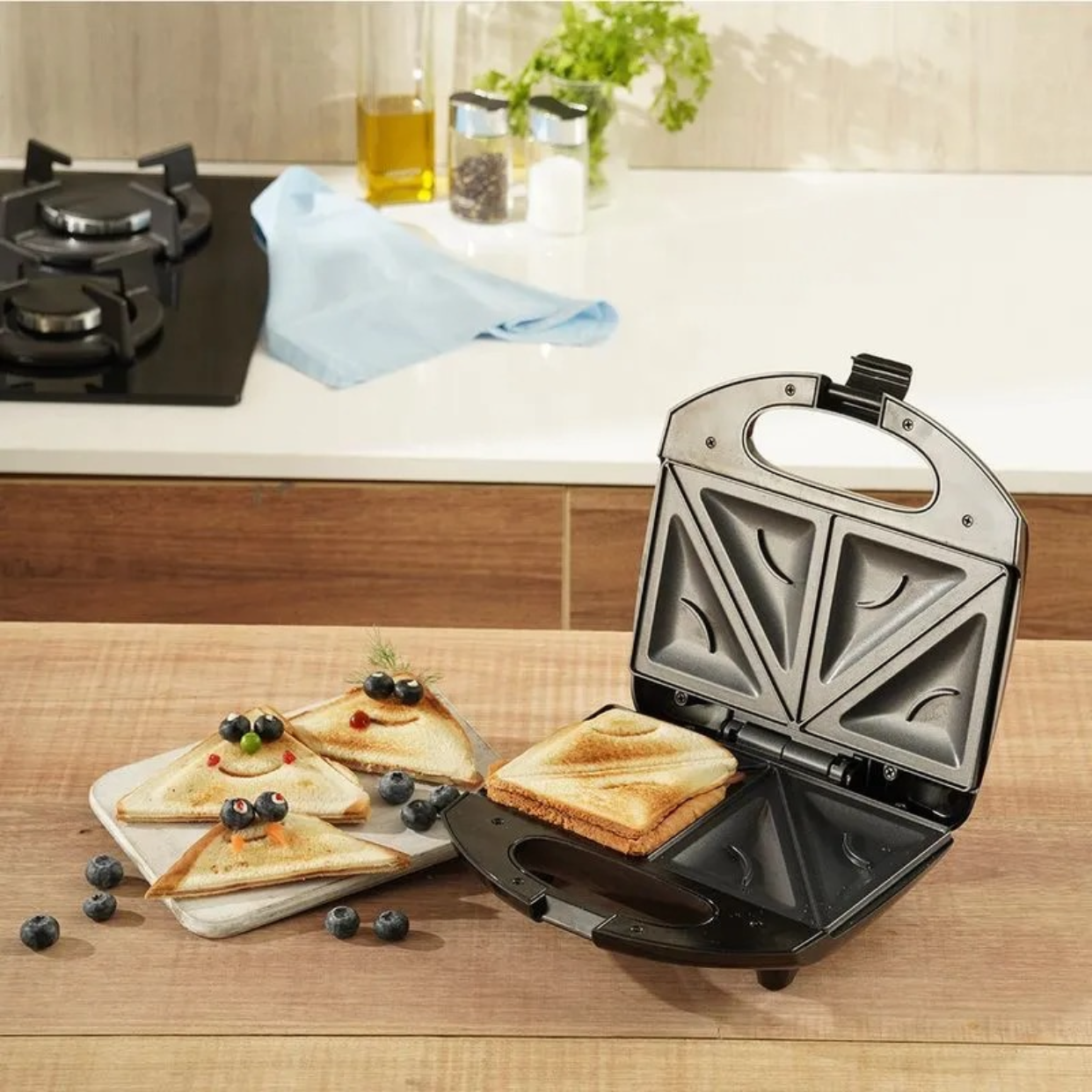Prepara sánduches calientes, crocantes y perfectamente sellados en minutos con la sanduchera Universal Triangulera Negra. Su diseño compacto y moderno en color negro se adapta a cualquier cocina, mientras sus placas triangulares antiadherentes permiten un sellado ideal y fácil limpieza. Perfecta para desayunos rápidos o meriendas sabrosas con el mejor estilo casero.